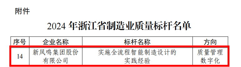 近日,2024年浙江省制造业质量标杆名单公布,新凤鸣集团“实施全流程智能制造设计的实践经验”经过经申报推荐、专家评审、网上公示等环节等层层遴选,光荣上榜。
