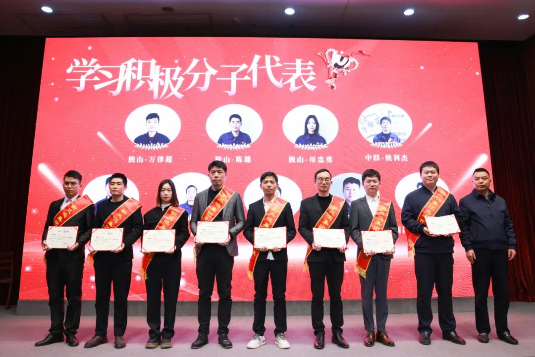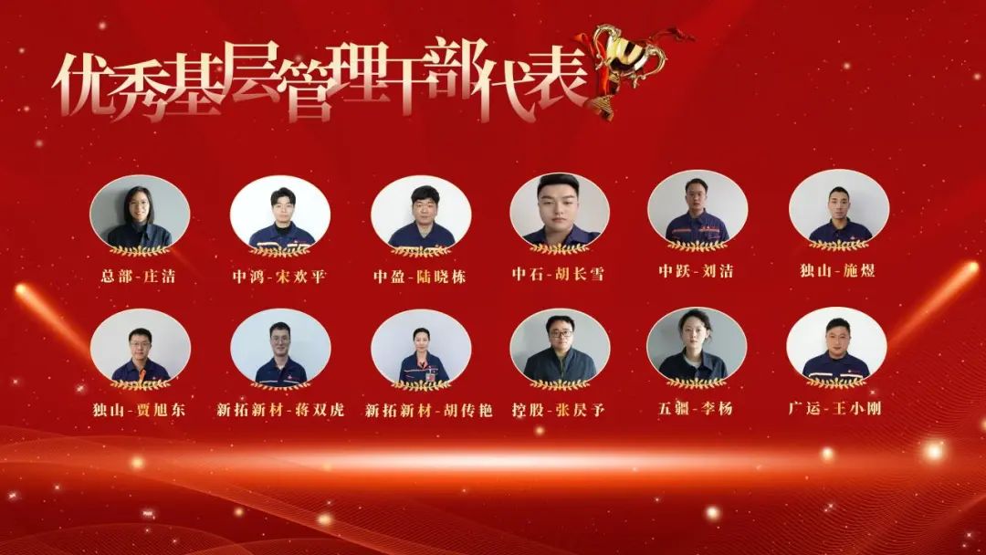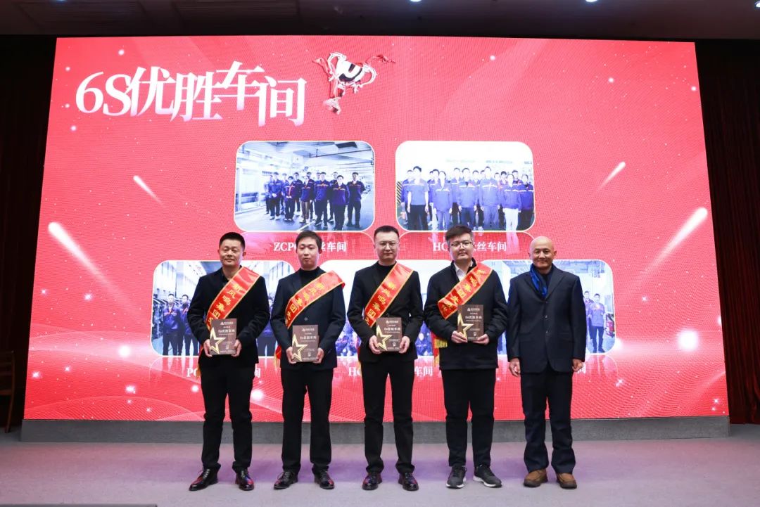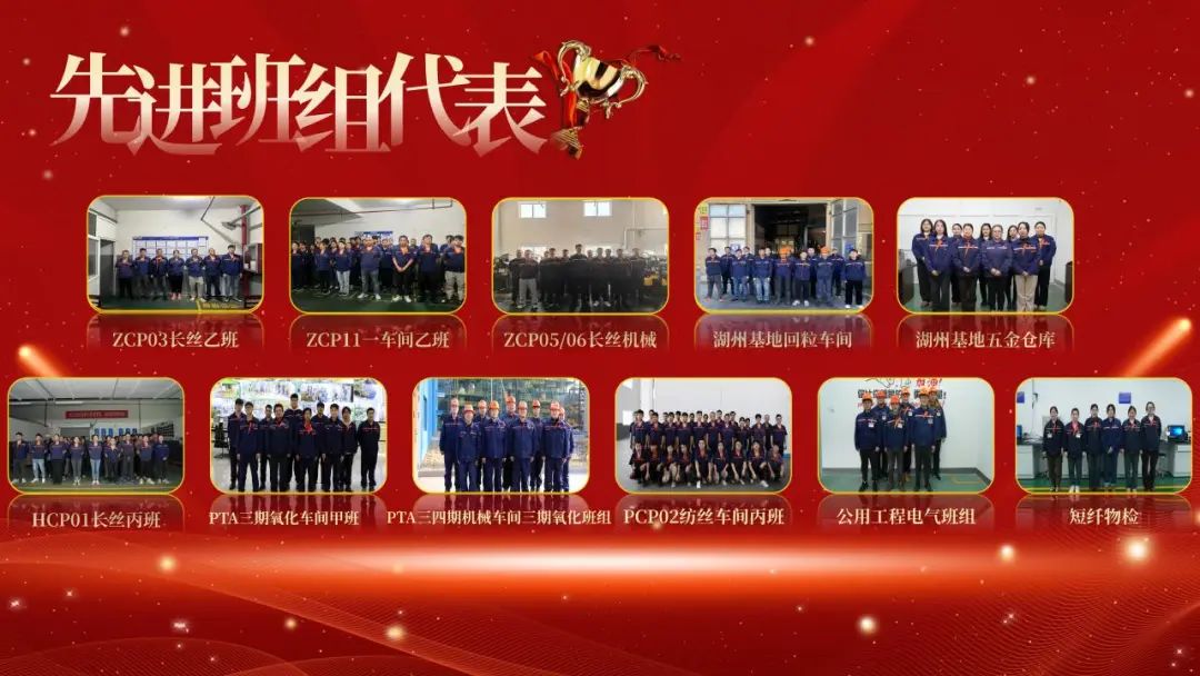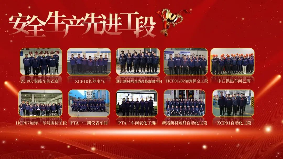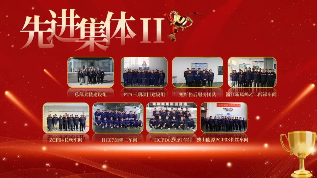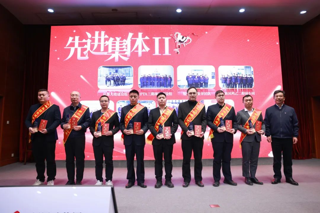执行总裁沈健彧宣读2024年度表彰文件,2024年共评选出:先进集体20个、先进班组(工段)66个、6S优胜车间5个、文明寝室16个、先进个人1214名,培训学习先进30名,最佳学习型组织1个,安全生产先进装置5个,安全生产先进工段10个,安全环保优秀员工12名,市级以上荣誉87名。