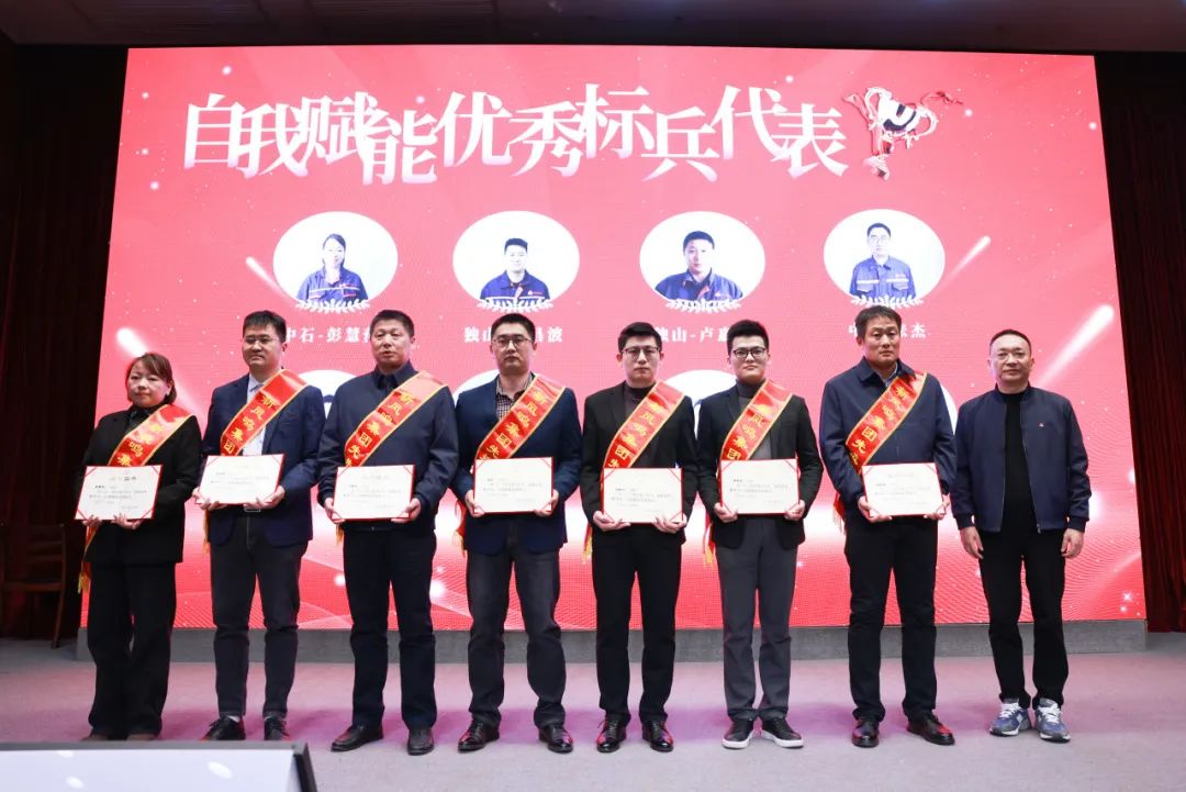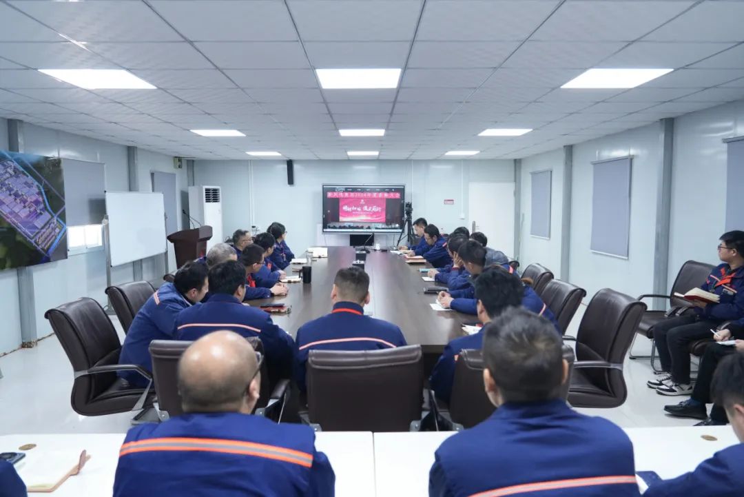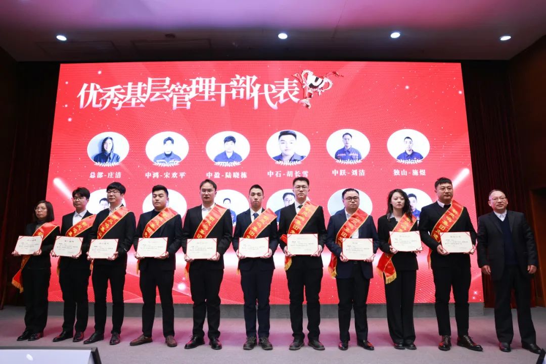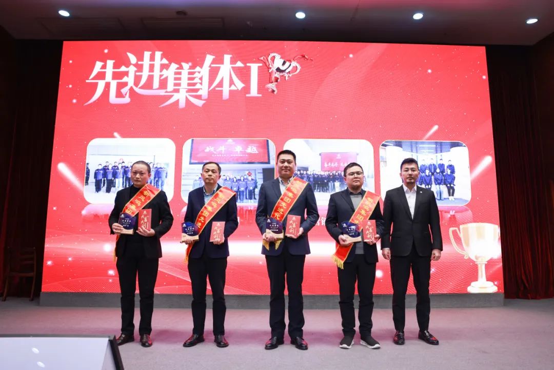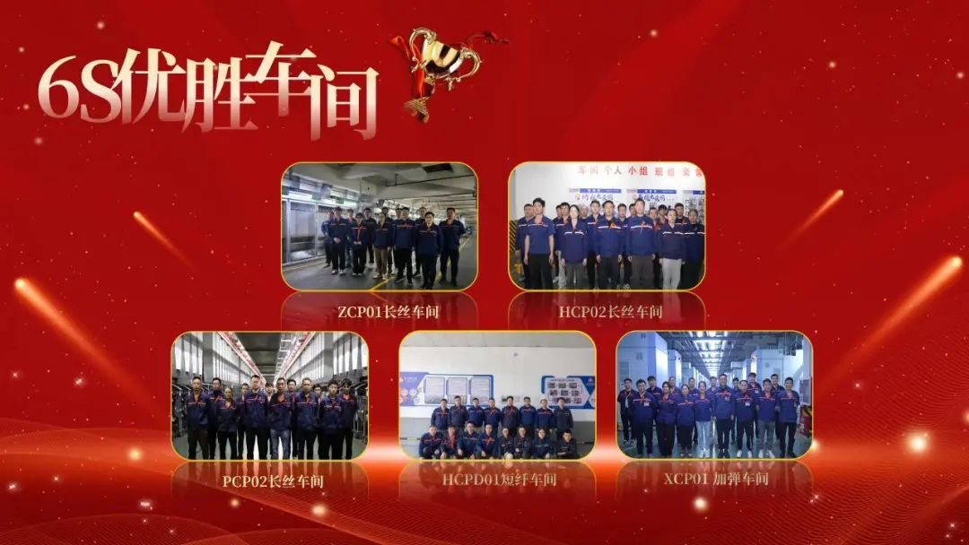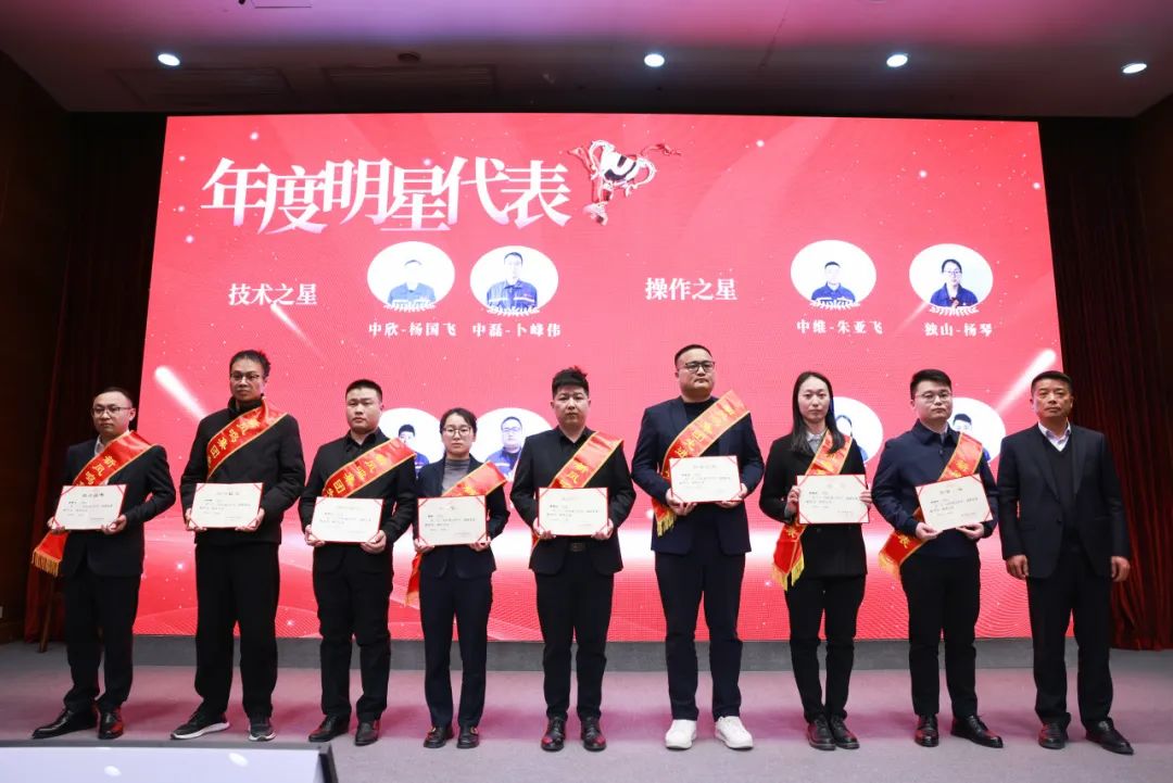执行总裁沈健彧宣读2024年度表彰文件,2024年共评选出:先进集体20个、先进班组(工段)66个、6S优胜车间5个、文明寝室16个、先进个人1214名,培训学习先进30名,最佳学习型组织1个,安全生产先进装置5个,安全生产先进工段10个,安全环保优秀员工12名,市级以上荣誉87名。