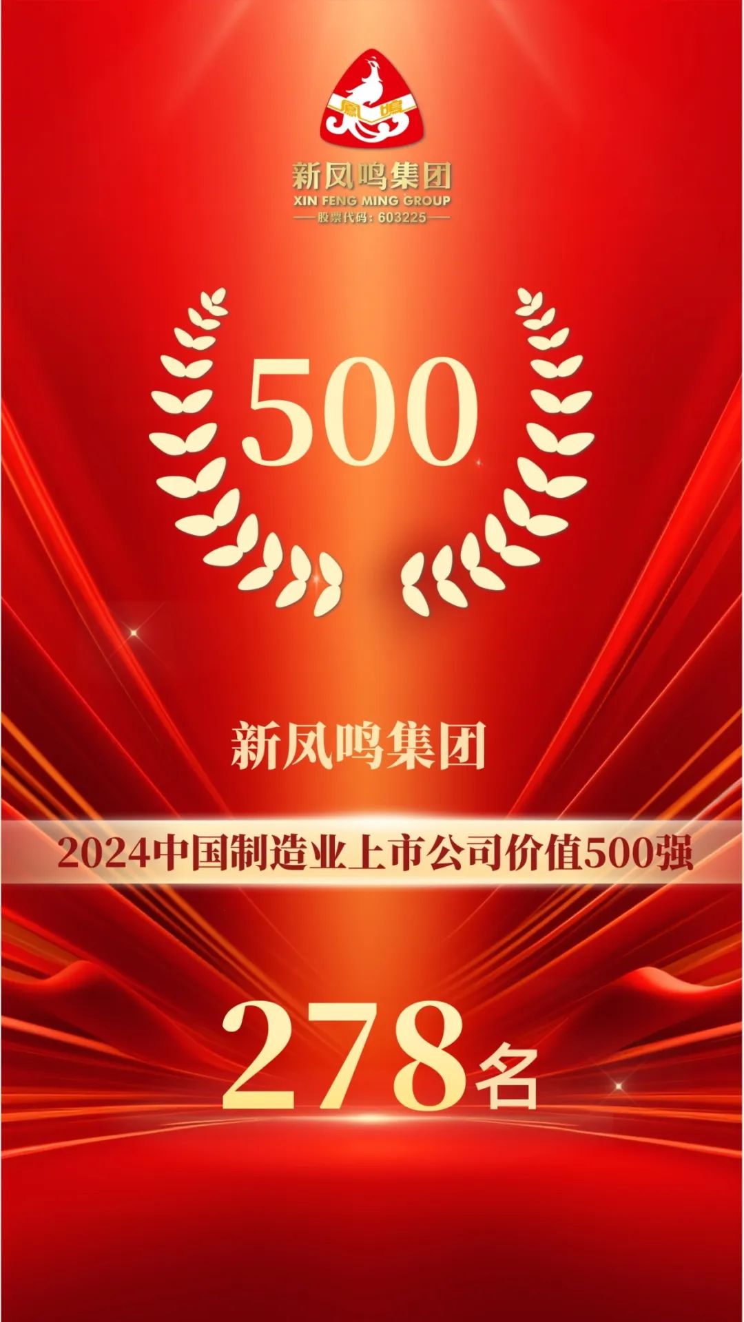 近日,第九届中国制造业上市公司价值500强大会暨数字CEO圆桌论坛在北京隆重召开。大会公布2024中国制造业上市公司价值500强榜单,新凤鸣股份(603225.SH)位列榜单第278名。
