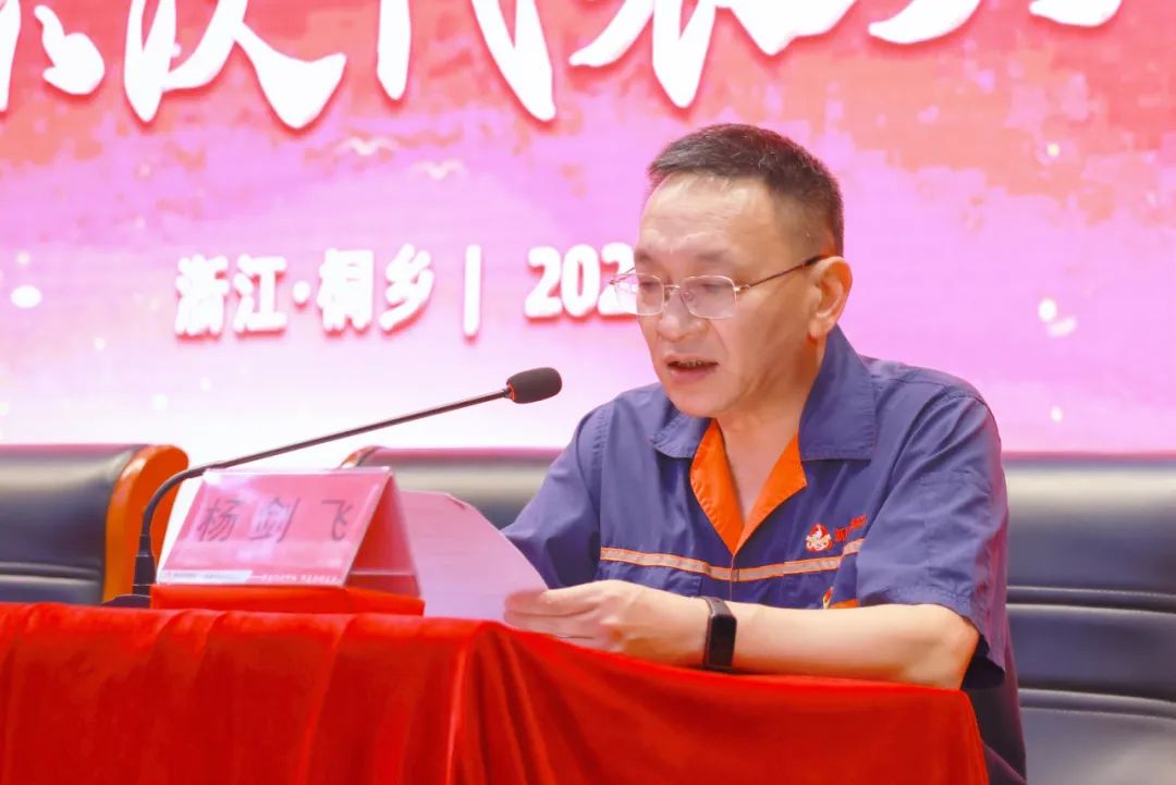 钟书记代表中共洲泉镇委员会向大会的召开表示热烈的祝贺!向新凤鸣集团各个岗位上辛勤工作的广大党员、干部、职工致以亲切的问候和崇高的敬意!提出三点要求:一、严格规范换届流程,确保选举工作风清气正;二、强化党员先锋作用,激发干事创业内生动力;三、夯实支部战斗堡垒,推动党建与经营深度融合。并期待新凤鸣在新一届集团党委的坚强带领下,在全体党员、干部员工的团结奋斗下,必将持续发扬“努力到竭尽全力、拼搏到感动自己”的精神,成为世界一流纤维和新材料合作伙伴。最后,预祝大会圆满成功!祝各位党员、同志们身体健康,工作顺利!祝新凤鸣“凤栖梧桐·凤鸣长新”!