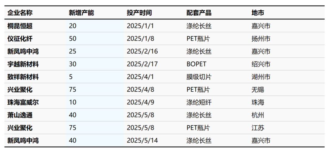 其中,涤纶长丝投产规模重新达到了125万吨,仅次于近些年来的热点聚酯切片,且投产区域大多位于传统集群江浙地区,从绝对值来看,2025年上半年涤纶长丝投产数量已经超过了2024年整年。