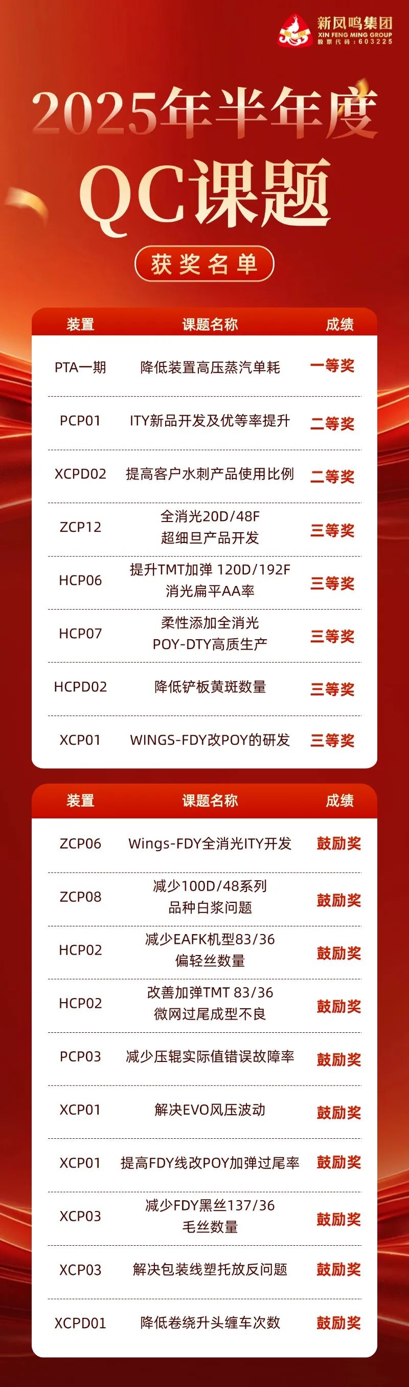 本届发表会的成功举办,不仅展示了公司在质量管理领域的丰硕成果,也为企业持续改进注入了新动能。QC活动是推动全员参与质量改进的重要平台。未来,新凤鸣将继续深化质量管理,以技术创新驱动产业升级,并勉励全体员工以QC活动为载体,将创新思维融入日常工作中,助力企业高质量发展。