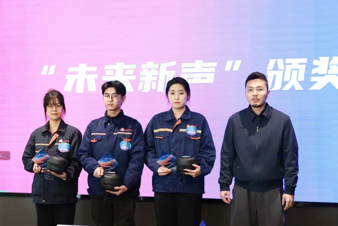 为鼓励新青年们敢于表达、勇于担当,现场也由参会领导及大众评委共同投票,评选出3名青年代表获得“未来新声”奖。最终来自徐州基地的王国龙、洲泉基地的司贤慧和湖州基地的沈采怡获此殊荣。这不仅是对获奖者的肯定,更是为全体新青年树立了标杆。