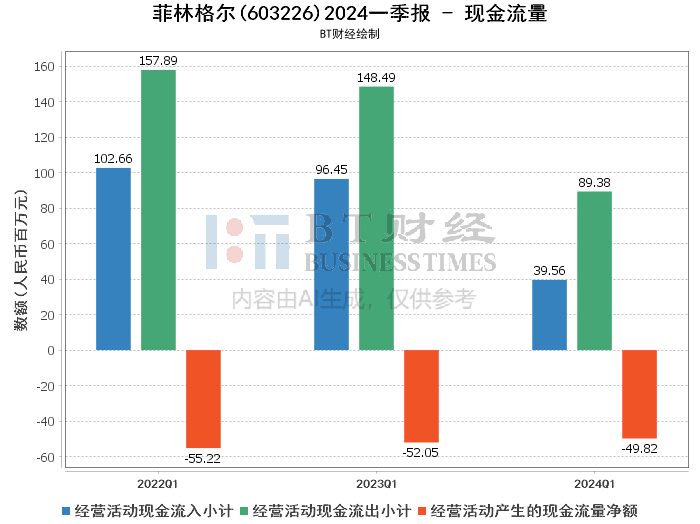 现金流量数据方面,菲林格尔公司本报告期的经营活动现金流入小计为39.56百万元,较上年同期的96.45百万元大幅减少。经营活动现金流出小计为89.38百万元,较上年同期的1.48亿元也有所减少。经营活动产生的现金流量净额为-49.82百万元,显示出公司在经营活动中的现金流压力较大。此外,投资活动产生的现金流量净额和筹资活动产生的现金流量净额也显示出公司在投资和筹资方面面临一定的挑战。