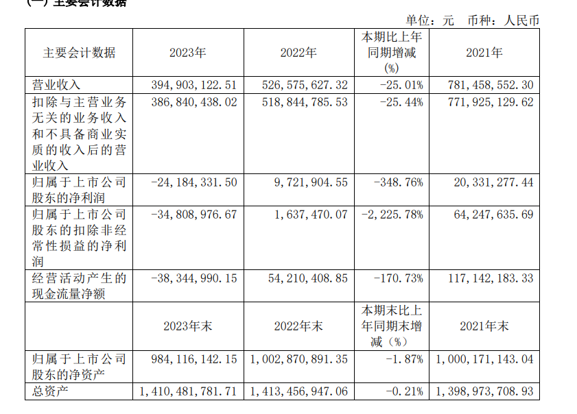 据菲林格尔2023年年度报告,菲林格尔营业收入3.95亿元,同比下降25.01%;归属于上市公司股东净利润-2418.43万元,同比下降348.76%。