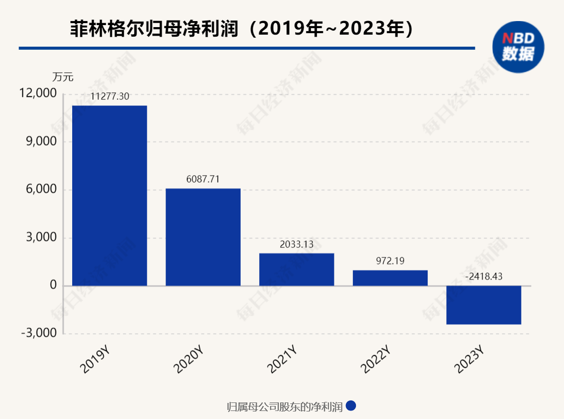 自2020年起,菲林格尔的净利润就开始出现逐渐下滑的趋势,至2023年由盈转亏。