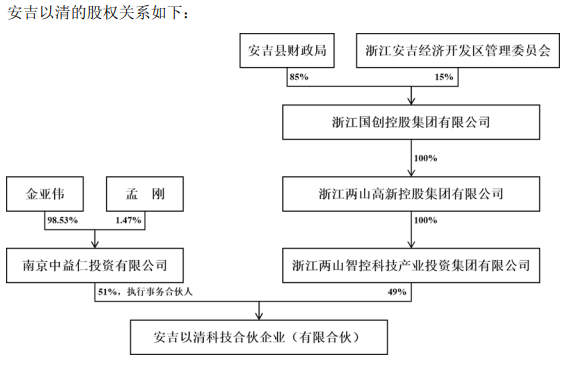 菲林格尔昨晚披露的公告显示,安吉以清由南京中益仁投资有限公司、浙江两山智控科技产业投资集团有限公司分别持有51%和49%的份额。南京中益仁投资有限公司系安吉以清的执行事务合伙人,由金亚伟持股98.53%。
