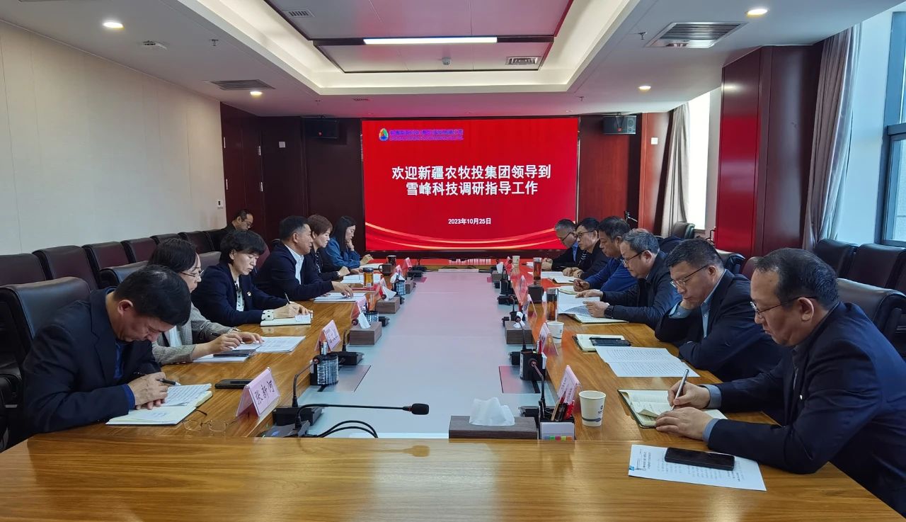 10月25日上午,新疆农牧投集团外部董事于新江、李津鹏、吴涛,副总经理卫新璞、总经理助理彭亮一行赴雪峰科技调研指导,并与雪峰科技在家领导班子成员座谈交流。