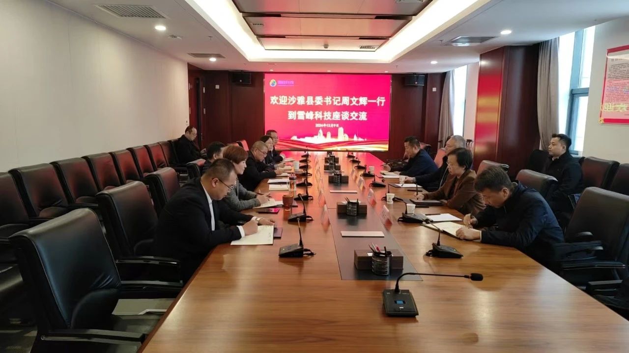 12月9日,沙雅县委书记周文辉一行到雪峰科技开展座谈交流。雪峰科技党委书记、董事长田勇,党委副书记、总经理姜兆新参加座谈交流。