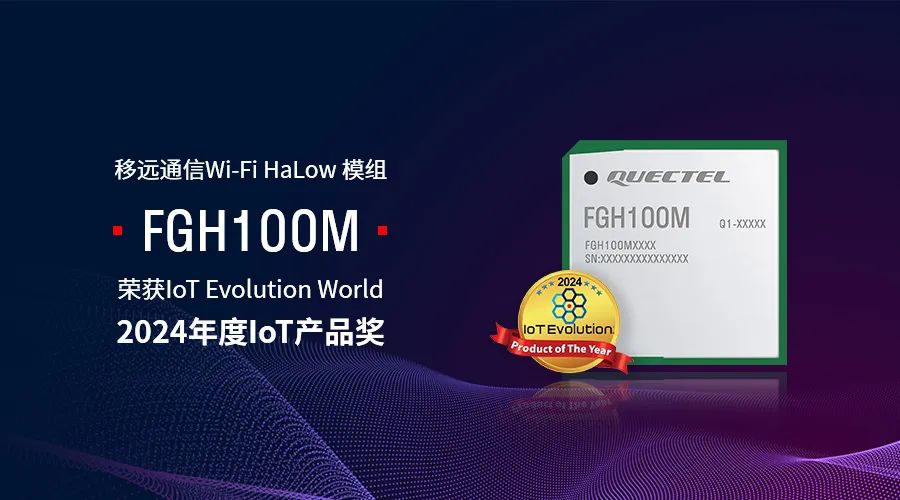 近日,全球知名物联网技术媒体IoT Evolution World重磅揭晓“2024年度IoT产品奖”(2024 IoT Evolution Product of the Year Awards)获奖名单,移远通信Wi-Fi HaLow 模组FGH100M凭借其在连接性、创新性等方面的优异表现,获此殊荣。