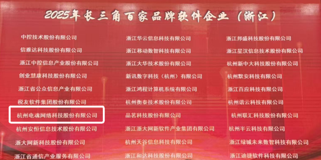 电魂网络获评2025长三角百家品牌软件企业、浙江省软件核心竞争力企业(规模型)。