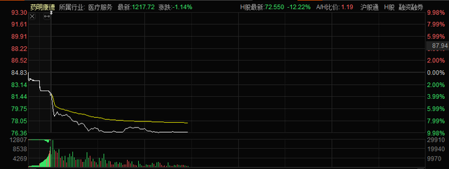 截至发文,药明康德跌幅约为9.95%,股价约为76.39元,总市值约为2261亿元。