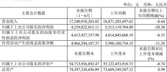 财报显示,2024年上半年,药明康德实现营业收入172.41亿元,同比下降8.64%;归属于上市公司股东的净利润42.40亿元,同比下降20.2%;实现扣非归母净利润44.14亿元,同比下降8.33%。