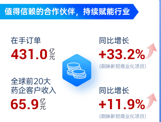 上半年在手订单达到431亿元,剔除新冠商业化项目同比增长幅度达到33.2%,创下历史新高。据粗略计算,公司今年上半年的新增订单大约251亿元,比去年同期的199.5亿元增长约25.81%。