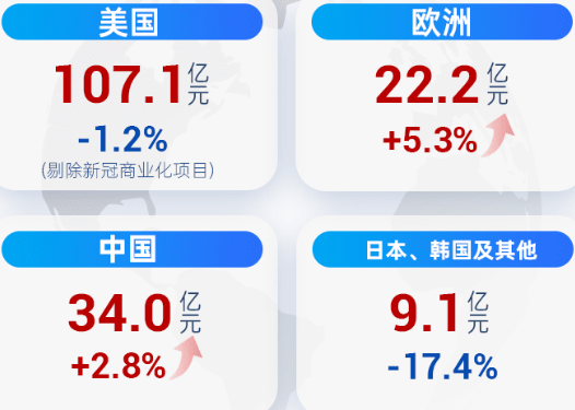 今年上半年,来自美国客户的收入为107.1亿元,虽然剔除新冠商业化项目同比下降了1.2%,但是依旧是中国区收入的3倍以上,贡献了全公司六成以上的收入。