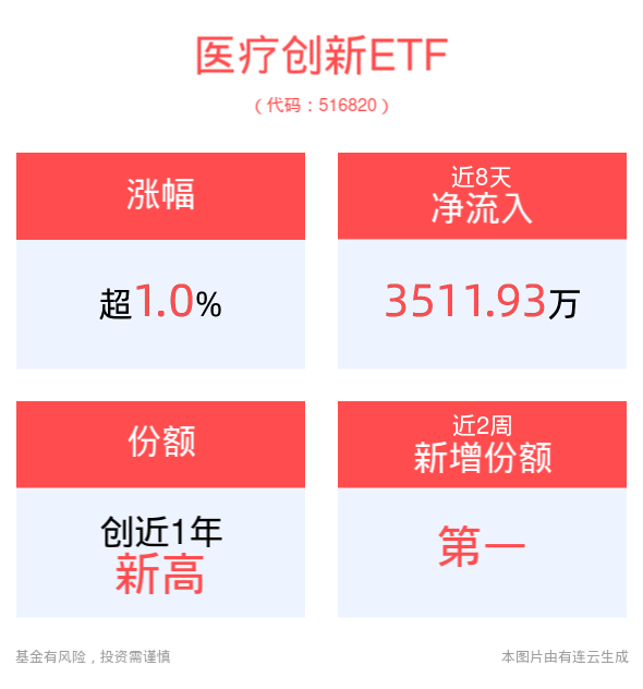 份额方面,医疗创新ETF最新份额达41.46亿份,创近1年新高,位居可比基金第一。