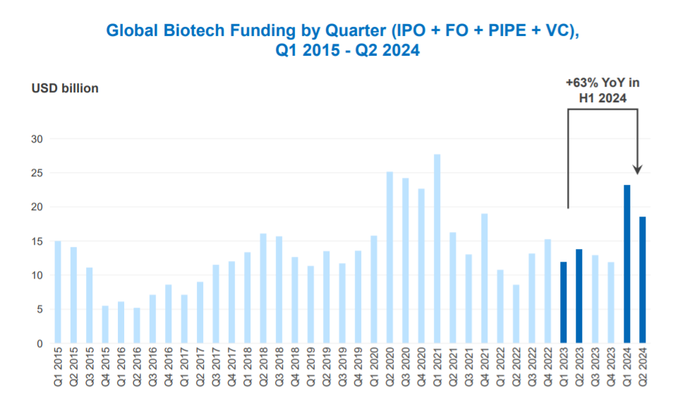 翻看行业发展数据,在过去的24年里,产业的热潮起起落落,FDA获批的创新药波浪式上升;而在过去8年,全球医药市场投融资历经先升后降,至去年底开始显著回暖,可被视作又一个周期收尾。