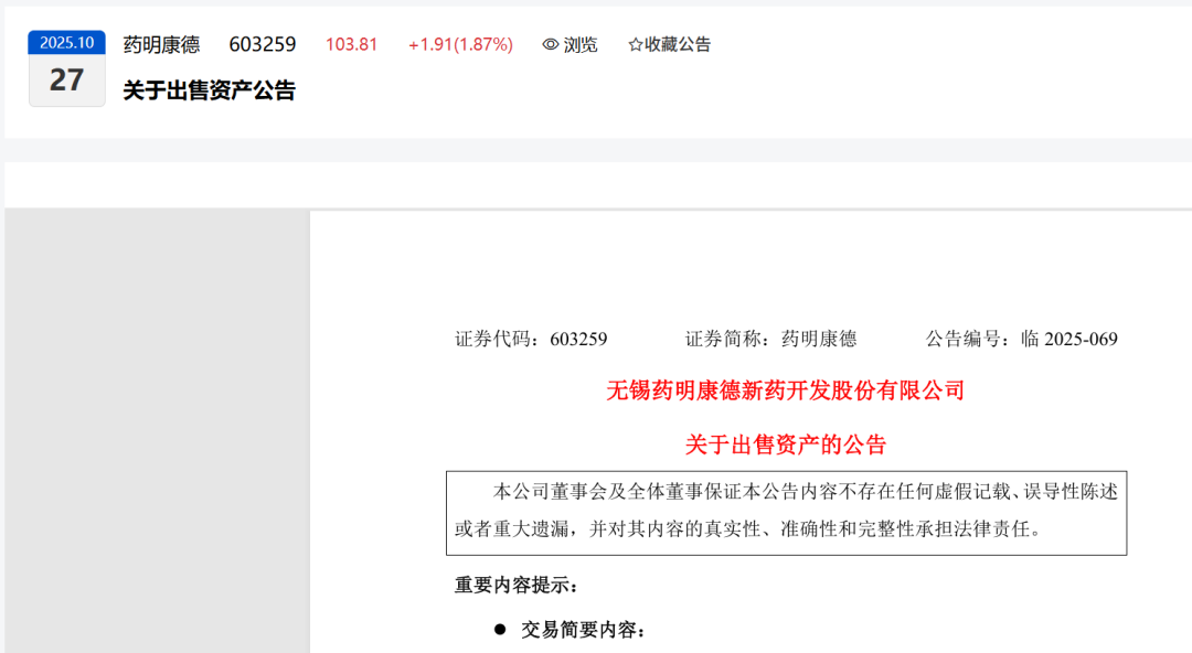 不再并表:交易完成后,这两家公司就不再是药明康德的子公司了。