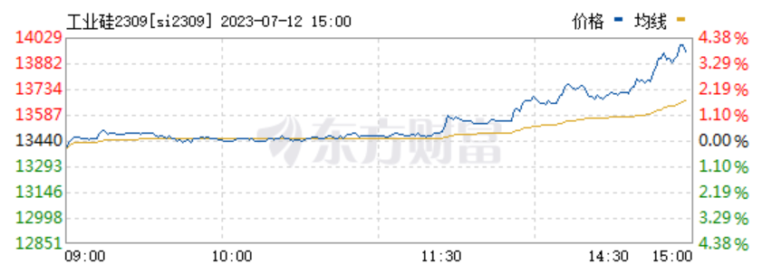 截止12日收盘,si2309合约收盘13950元/吨,上涨510,日内涨幅超4%。