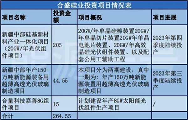 2023年6月29日,合盛硅业合量科技项目正式启动,合盛硅业总投资15亿元在嘉兴嘉善打造合量科技项目,计划建设年产8GW太阳能光伏组件生产项目。