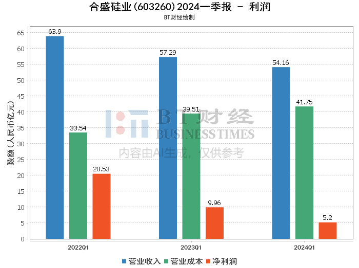 在利润方面,合盛硅业的营业收入为54.16亿元,同比下降5.46%。营业利润为7.39亿元,同比下降43.46%。净利润为5.2亿元,同比下降47.79%。毛利率从上年同期的31.03%下降至22.91%,净利率从上年同期的17.39%下降至9.6%。净资产收益率(ROE)从期初的3.56%下降至1.6%。这些数据表明,尽管公司在市场上保持了一定的销售规模,但由于产品价格下跌和行业竞争加剧,公司的盈利能力受到了较大影响。