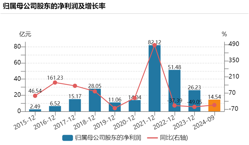 进入2024年,这一趋势仍在延续,前三季度合盛硅业实现营业收入203.71亿元,同比微增2.44%;实现净利润为14.22亿元,同比下降33.42%。