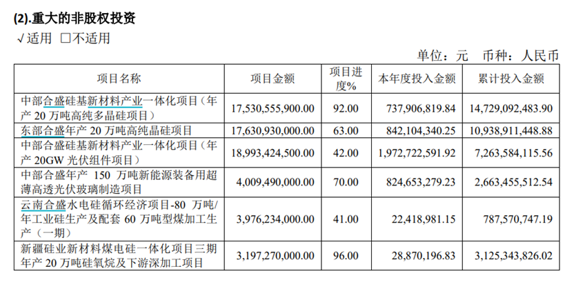 不过,合盛硅业的扩张还是太激进了。2021年—2023年,合盛硅业公布的扩张项目合计11个,投资总额超过805亿元,按其截至2024年一季度末的总资产898亿元计算,意味着合盛硅业为转型扩张赌上了自己的九成家底。