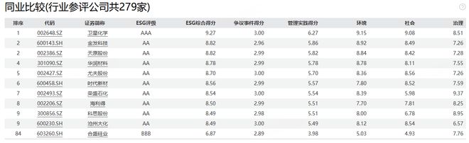 ESG表现方面, 合盛硅业 获评“BBB”级,位于行业中上游。