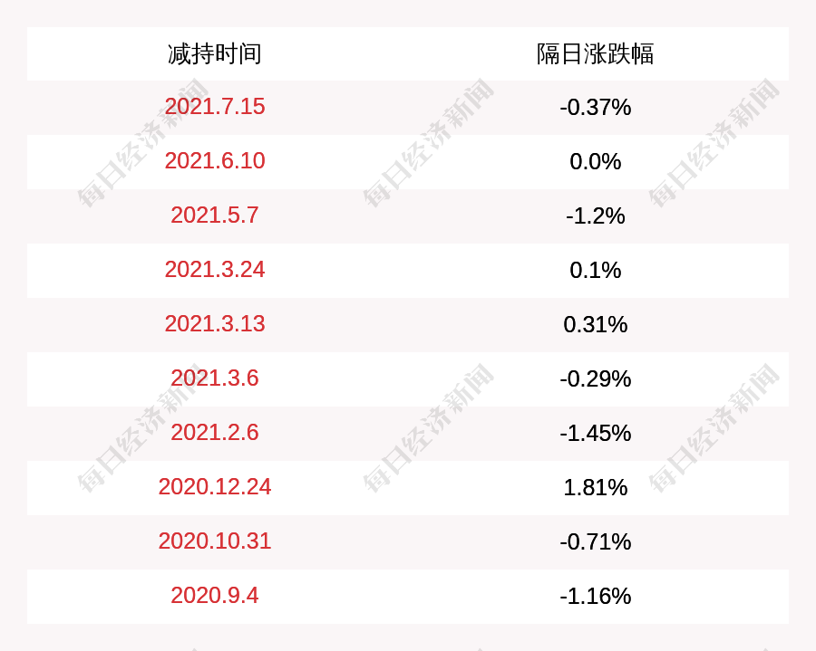 2.海鸥股份上次发布减持公告是2021年07月15日,第二个交易日下跌0.37%,海鸥股份近一年共发布11次减持类公告。更多关键信息,请搜索“道达号”。