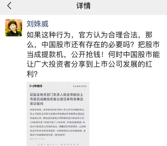 证监会称金帝股份上市首日出借证券合规 刘姝威点评