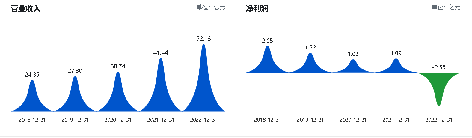 主客观因素的考验和冲击,在产销量总体下降幅度不大的情况下,大业股份出现自2017年上市以来的首次亏损。相关数据显示,2020年-2022年,大业股份实现营业收入分别为30.74亿元、41.44亿元、52.13亿元,同期净利润为1.03亿元、1.09亿元、-2.55亿元。