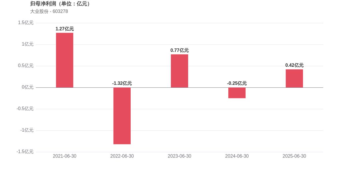 从机构持股情况来看,截至2025年上半年,持有大业股份股票的机构家数达到2家,相比2024年同期的48家减少了46家,表明机构投资者对公司的信心减弱。