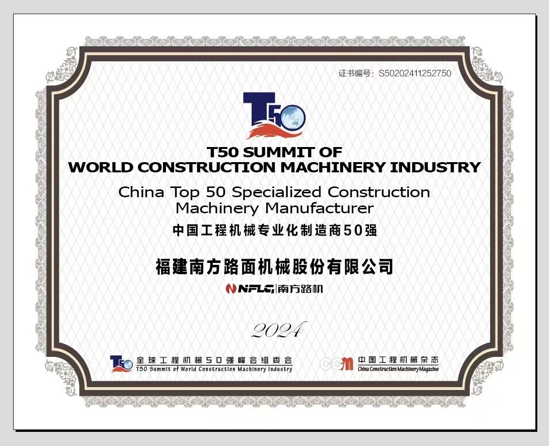△南方路机荣登“中国工程机械专业化制造商50强”榜单
