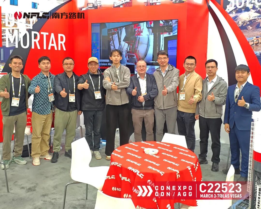 南方路机产品矩阵高度贴合北美市场的独特工况与需求,可为客户提供定制化解决方案。展会期间,南方路机展位始终人流如织、精彩纷呈。南方路机技术和海外销售团队与到场客商展开深入交流,积极探讨工程机械行业智能化、绿色化、可持续化发展趋势,并分享了南方路机在全球市场中技术优势与成熟服务经验,赢得了客户的高度认可与称赞。
