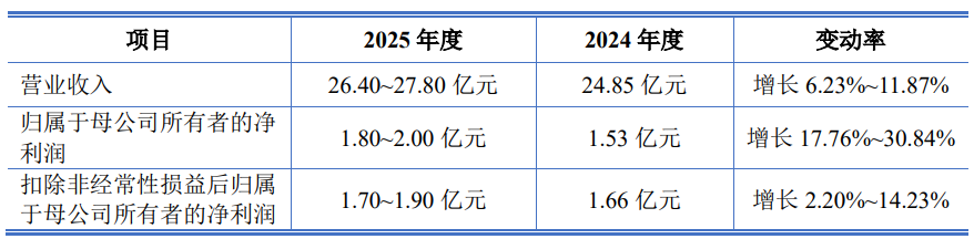林平发展预计2025年营业收入26.40亿元至27.80亿元,同比增长6.23%至11.87%;归属于母公司所有者的净利润1.80亿元至2.00亿元,同比增长17.76%至30.84%;扣除非经常性损益后归属于母公司所有者的净利润1.70亿元至1.90亿元,同比增长2.20%至14.23%。