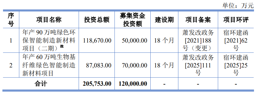 林平发展本次募集资金总额71,417.82万元,扣除发行费用(不含增值税)后募集资金净额为62,409.33万元,比原计划少57,590.67万元。林平发展2026年2月5日披露的招股书显示,公司拟募集资金120,000.00万元,用于年产90万吨绿色环保智能制造新材料项目(二期)、年产60万吨生物基纤维绿色智能制造新材料项目。