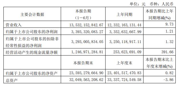 昨晚,海天味业发布2022年半年度报告。今年上半年,海天味业营业收入135.32亿元,同比增长9.73%:归属于上市公司股东的净利润33.93亿元,同比增长1.21%;归属于上市公司股东的扣除非经常性损益的净利润32.93亿元,同比增长1.32%;经营活动产生的现金流量净额12.47亿元,同比增长391.66%。