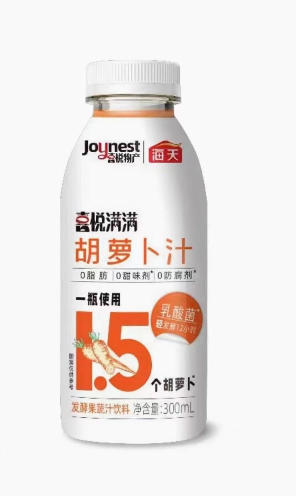 去年3月,海天推出一款名为“爱果者”的苹果醋饮料。紧接着,最近海天又推出了一款名为“喜悦满满”的胡萝卜发酵果蔬汁饮料。