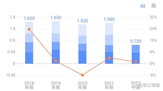 我们看到21年每股收益是1.58元每股,这里采用了静态市盈率计算,因今年业绩同比增长不大,就采取去年每股收益计算。