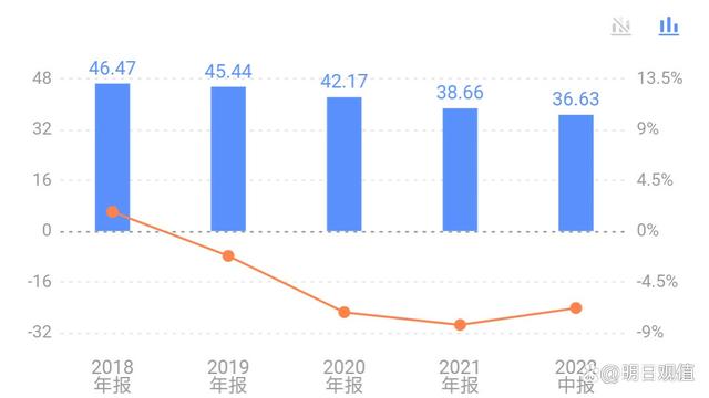 从2019年开始毛利率一直是下降的趋势,到2202年一二季度才有百分之三十六。