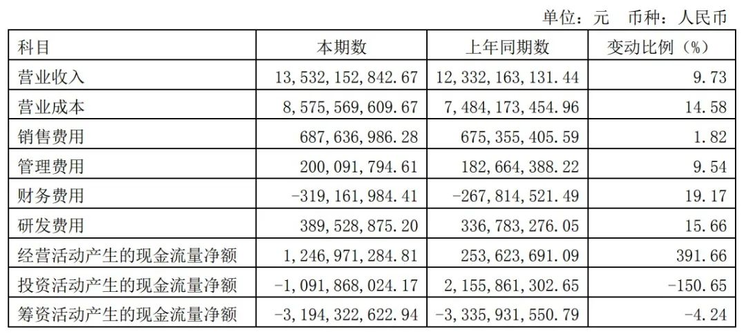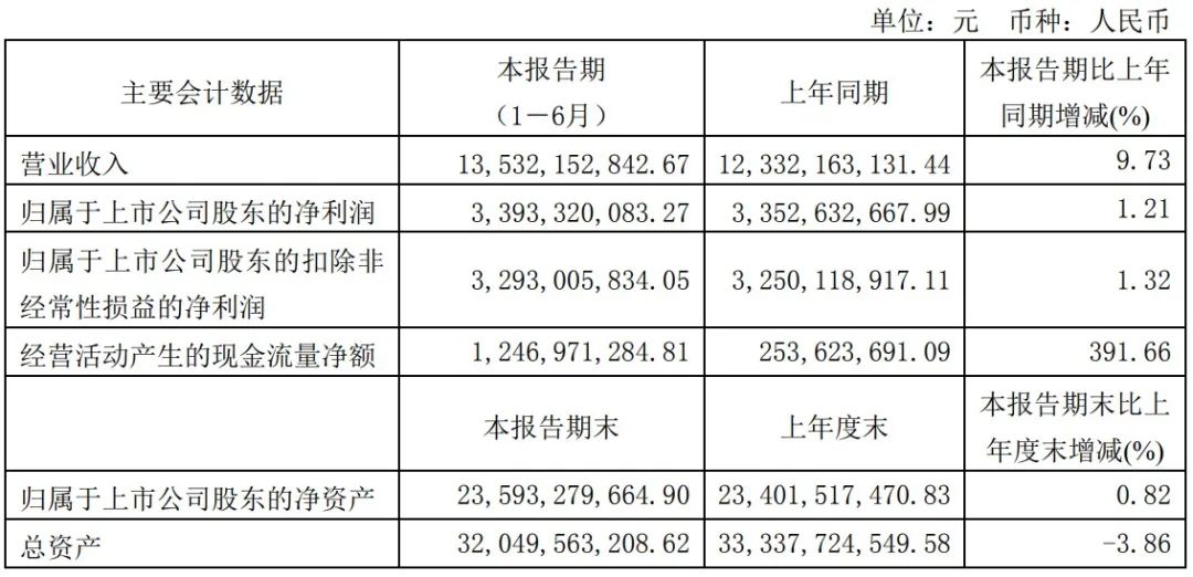 如下图中报数据披露,期内其营收同比增幅9.73%,为135.3亿元。归属净利润33.93亿元,同比微增1.21%。增收不增利依然明显。