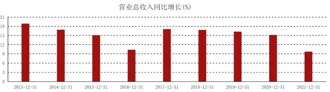 不过遗憾的是,各种内外因素交困之下,“酱油茅”增速回归,似乎仍需时日。2017年内的高光时期之后,从营收同比增速来看,2021年的海天酱油达到近9年的最低点为9.71%,再来看2022半年报9.73%的这个增速,同比来看就比较一般了。