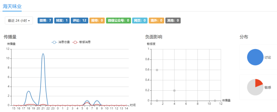 从舆情热点态势来看,昨日下午到今日下午,海天味业又经历了几波关注。