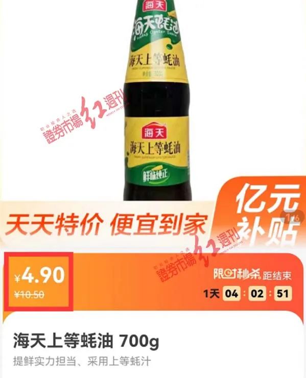 海天部分产品正被“赠送” 部分被四折促销 |