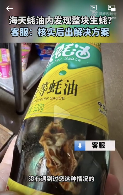 近日,有网友在海天蚝油内发现疑似生蚝的不明物。海天客服对消费者的疑问回应称,“还不能判定是生蚝,先要核实情况是不是存在才能解决,从没遇到过这种情况。”新浪财经多次致电海天味业品牌中心,但截至发稿,海天方面未给与回应。