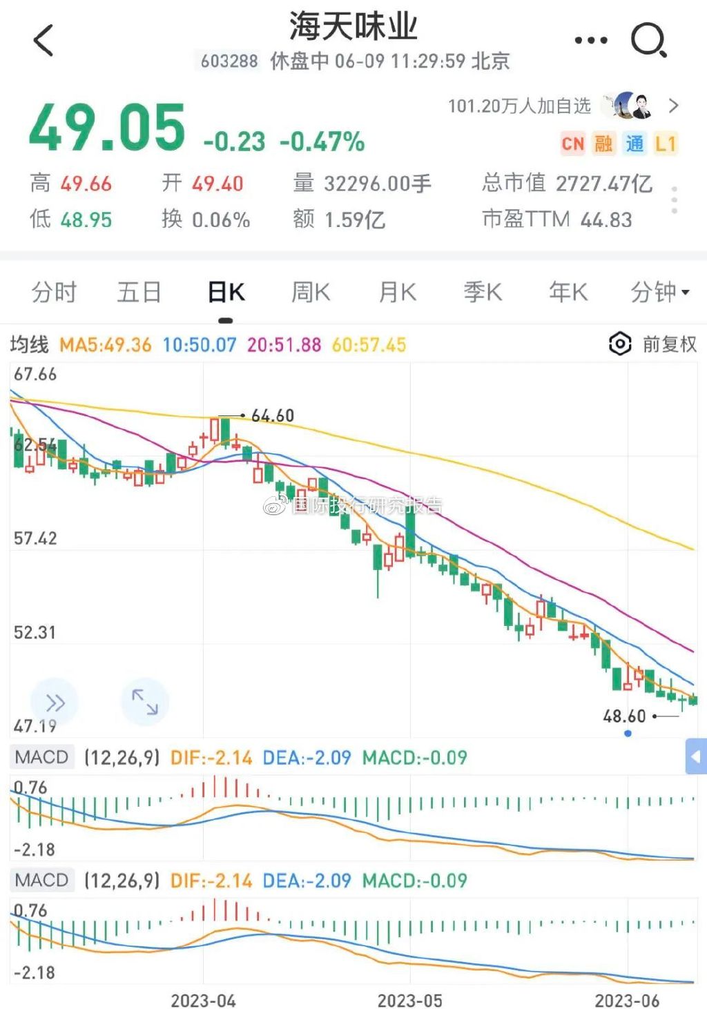 资本市场是残酷的,目前海天味业的16万多股民都是最近几年新来的,套牢者心如刀绞,不知道海天味业管理层有没有办法给投资者回报!