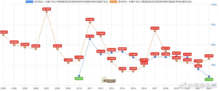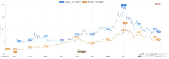 如果说因为海天的成长性比茅台更好,所以给予他更高的估值,这从过去十余年的情况来看,好像也不太能说通。