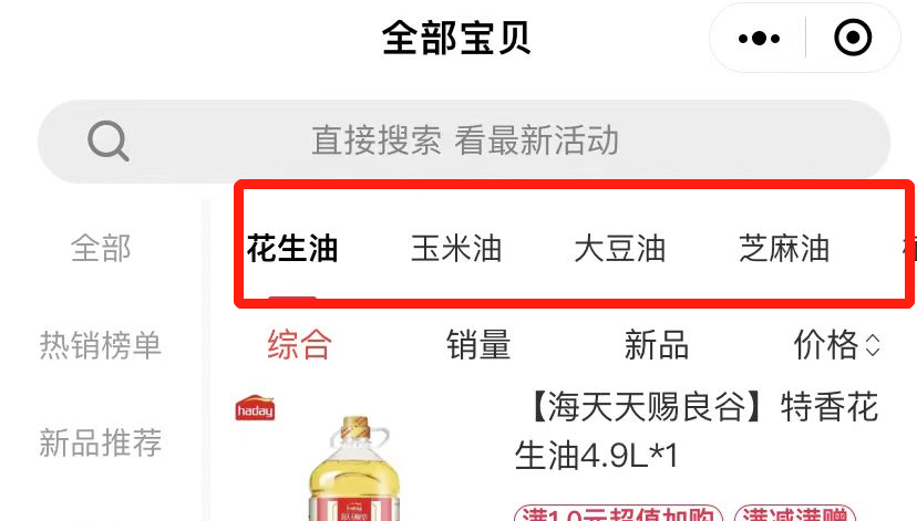 其实,海天味业的食用油业务经过前两年的并购,已经形成了“油司令”“天赐良谷”“久晟”“燕庄”等多个品牌,而在海天味业自营的“海天美味馆”里发现,海天的油类产品已经设置了花生油、玉米油、大豆油、芝麻油、植物调和油及茶油等多个品类。