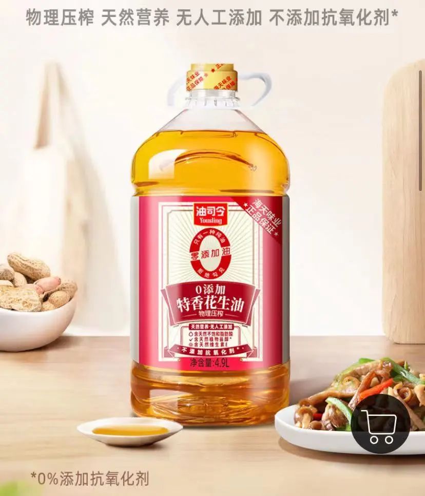 而销量层面,在海天美味馆小程序中,海天的“天赐良谷”特香花生油售价为175元/桶(4.9L/桶),有记录的购买人数为3764人;海天“天赐良谷”玉米胚芽油则有3中规格,分别为4.9L/桶、1.9L/桶和1.28L/桶,售价为96元、38.5元和29.9元,购买人数分别为2224人、320人和1438人;海天“天赐良谷”大豆油的售价为92.5元/桶(4.9L),购买人数为1231人;另外,像天赐良谷芝麻香炒菜油的价格为109元/桶(4.9L),还有火锅油碟(250ml/瓶),售价为8.9元……